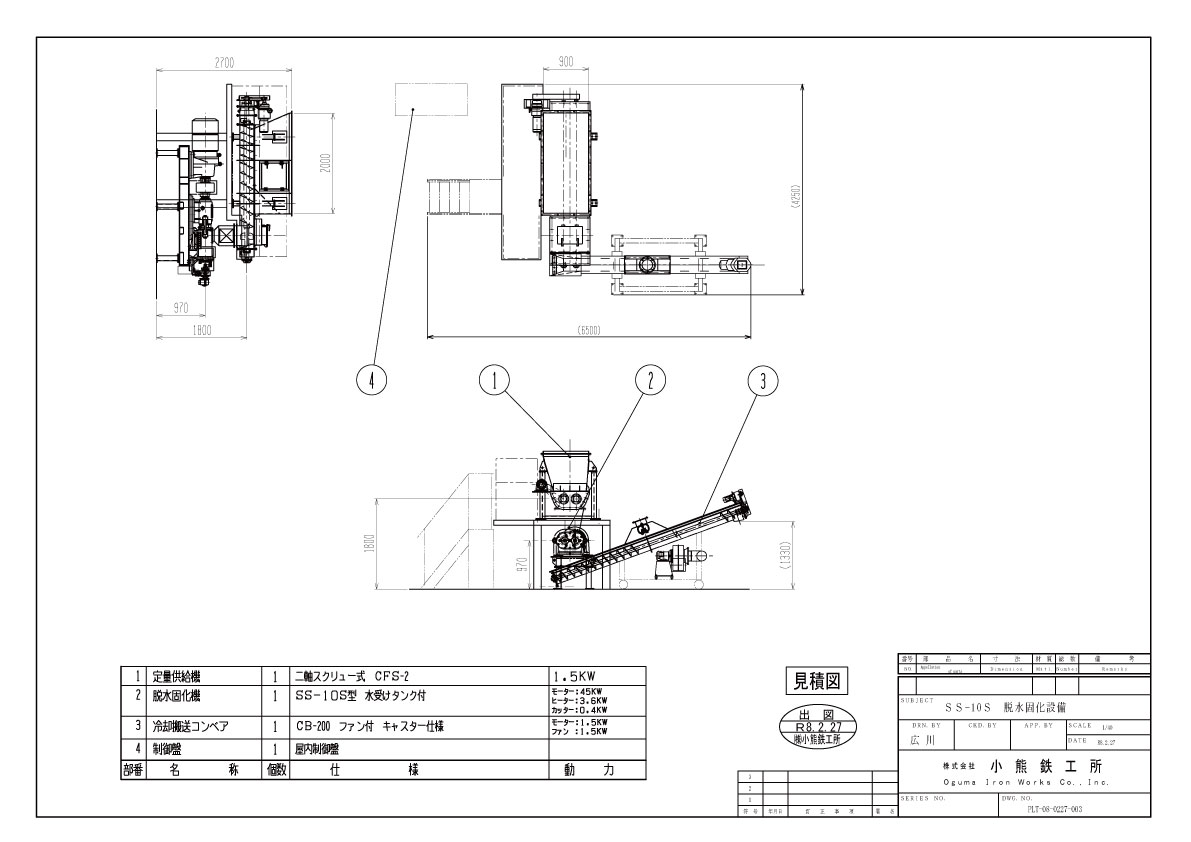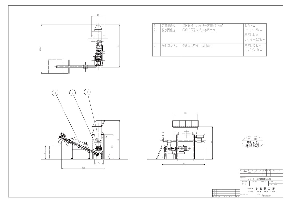 | パルパー粕固形化:200WBkg/H 含水率65% |